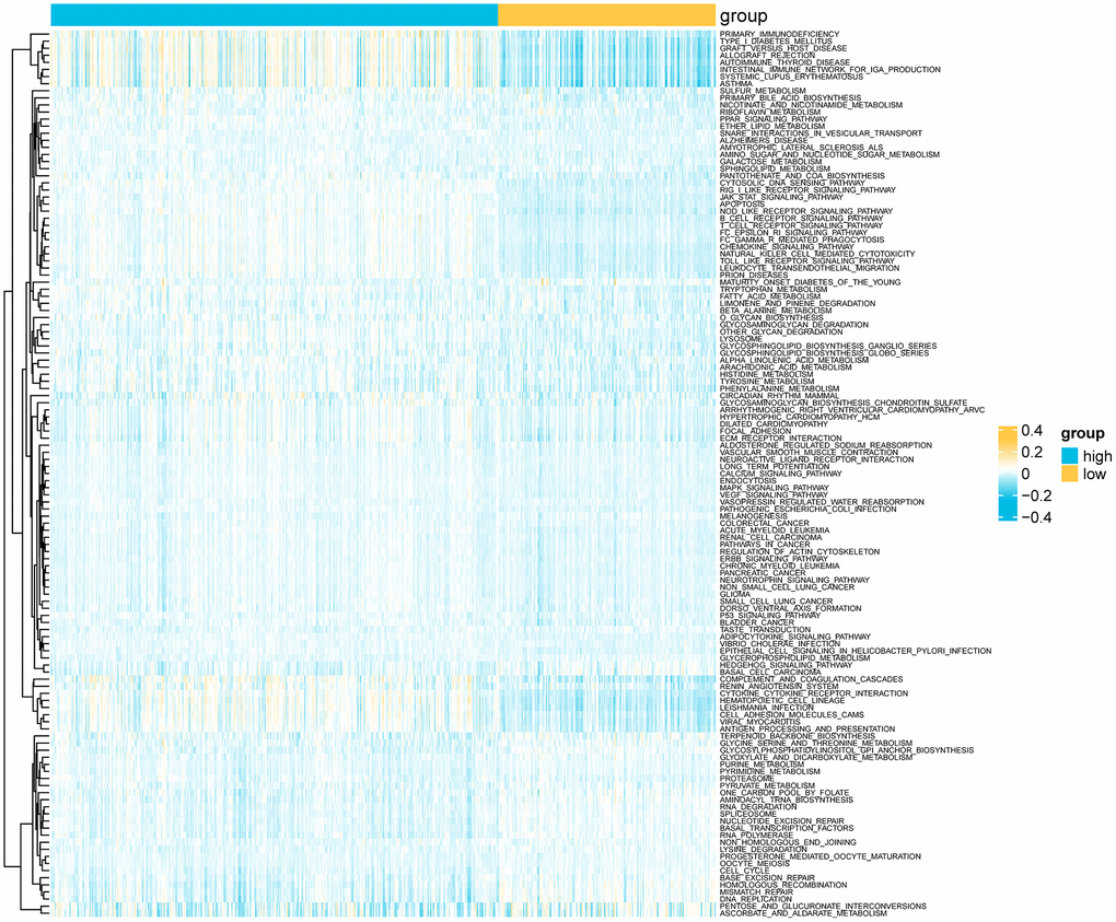 Based on the CNV data from TCGA, the “matfoos” package was used to display the waterfall plot of the mutation rate of necroptosis genes. Fisher’s exact test was used to identify the differences in the CNVs between the two risk groups. The KEGG pathway gene collection “c2.cp.kegg.v7.4.symbols.gmt” was downloaded from the MsigDB database (http://www.gsea-msigdb.org/), and the pathway enrichment scores were calculated based on ssGSEA. Differential pathways between the two groups were screened using the “limma” package. The TIMER database (https://cistrome.shinyapps.io/timer/), and the CIBERSORT, XCELL and TIMER algorithms were used to calculate the immune cell infiltration in LUSC samples. In addition, the necroptosis signature was also calculated based on the GDSC (https://www.cancerrxgene.org/) and CCLE (https://sites.broadinstitute.org/ccle/) databases. The correlation between the signature and drug sensitivity (IC50) was calculated by Spearman method, and the differences between the risk groups were compared.