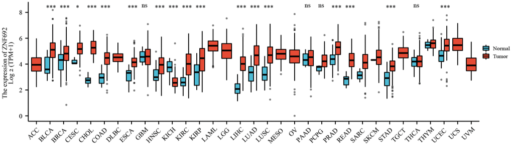 Expression analysis of ZNF692 in pan cancer