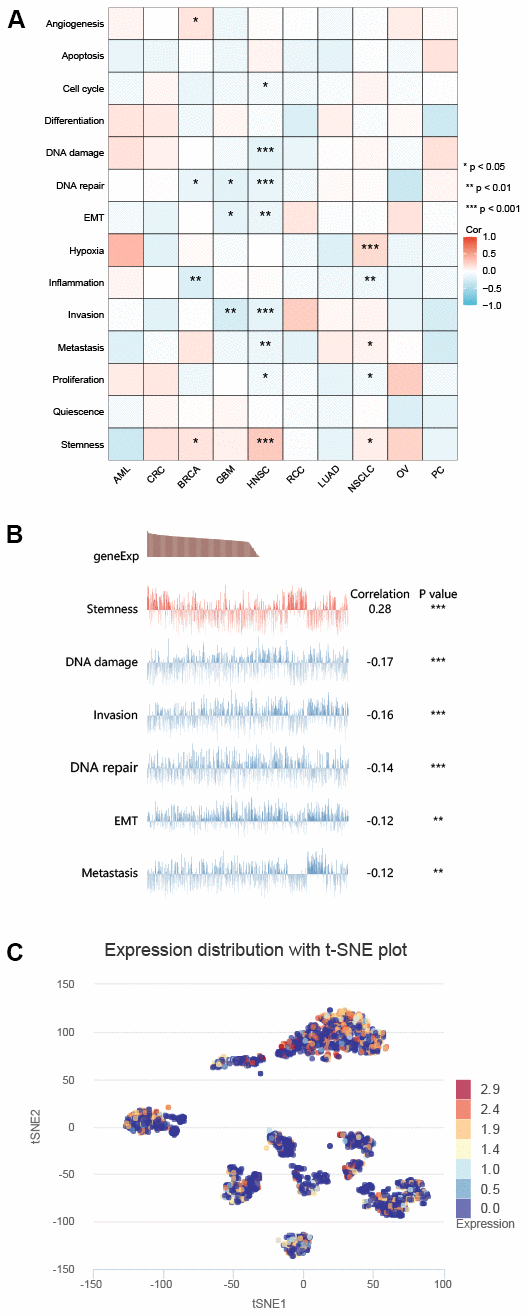 - 27. Yuan H, Yan M, Zhang G, Liu W, Deng C, Liao G, Xu L, Luo T, Yan H, Long Z, Shi A, Zhao T, Xiao Y, Li X. CancerSEA: a cancer single-cell state atlas. Nucleic Acids Res. 2019; 47:D900–8. https://doi.org/10.1093/nar/gky939 [PubMed]