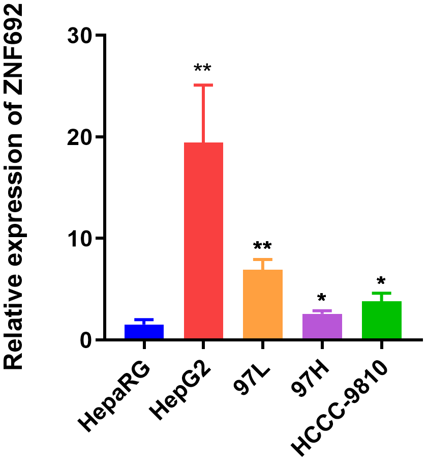 ZNF692 was significantly upregulated in HCC cell lines