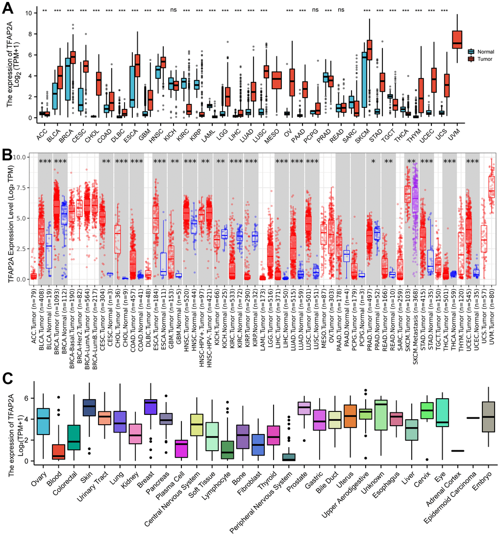 Differential expression of TFAP2A in pan-cancer and normal tissues
