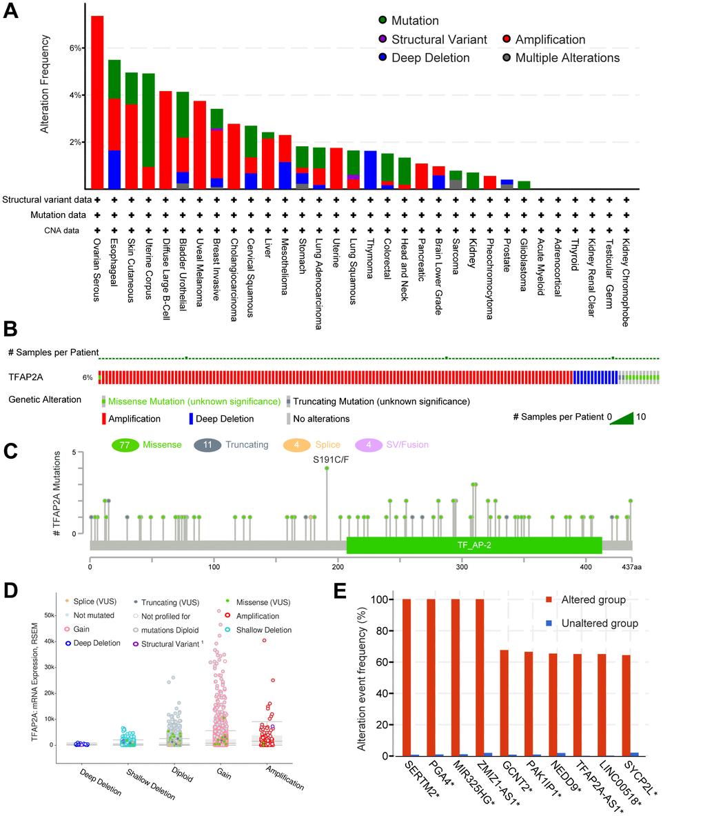 The genetic alteration analysis of TFAP2A in various cancers