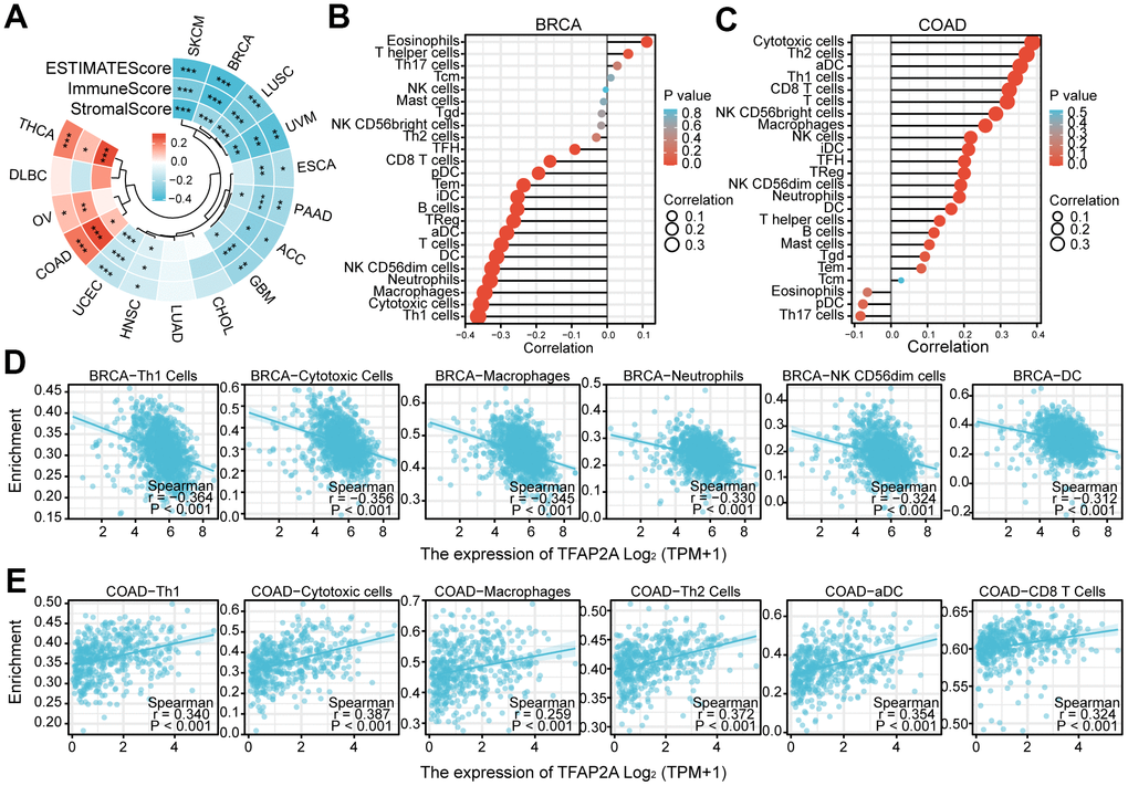 Analysis of TFAP2A expression with tumor immune microenvironment