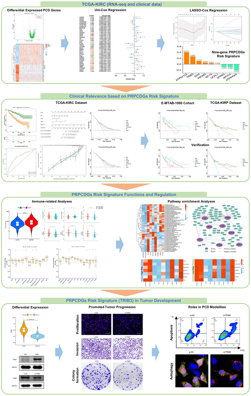 Together, our study indicated that PCD might affect the prognosis of RCC patients. More investigations on PRPCDGs (such as TRIB3) could get further insights into mechanisms of tumor progression and provide potential targets for RCC treatment.