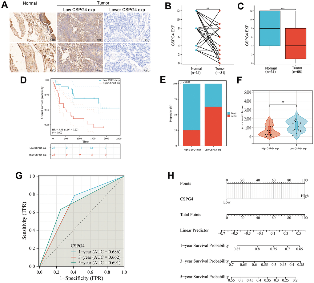 We employed the Kaplan–Meier plotter and the PrognoScan database for external validation of the correlation between CSPG4 expression and survival. To predict future survival, we integrated both univariate and multivariate Cox regression methods. Additionally, we generated a nomogram to enhance the clarity of our analytical findings.