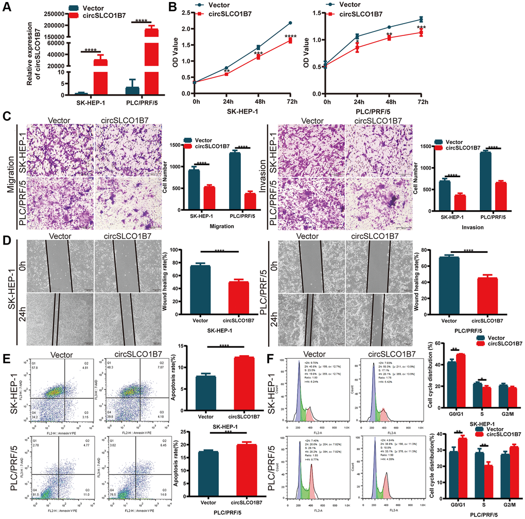 Effect of overexpression of circSLCO1B7 on proliferation, invasion, migration, apoptosis and cell cycle