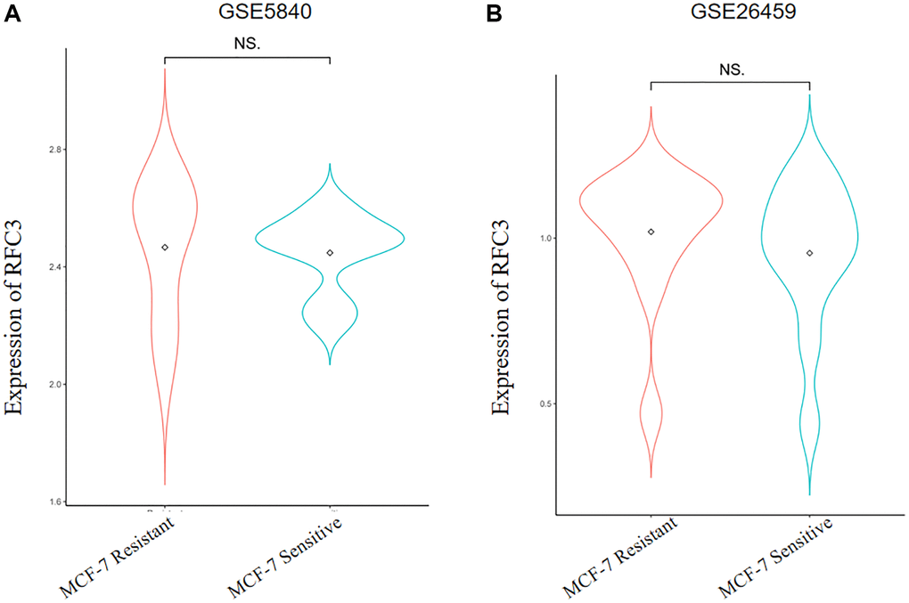 We investigated the mechanism of TAM resistance in ER-positive breast cancer patients through the GEO database and obtained two different gene expression microarrays: GSE5840 and GSE26459. The differentially expressed genes were analyzed by R3.6.3 and its helper package. The results showed that RFC3 was upregulated in TAM-resistant MCF-7R cells (Figure 5A, 5B, P > 0.05).