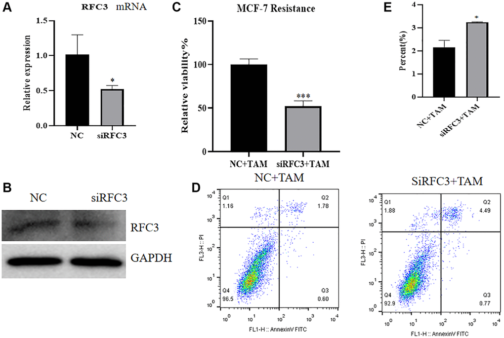 Effects of TAM on knockdown of RFC3 in MCF-7R