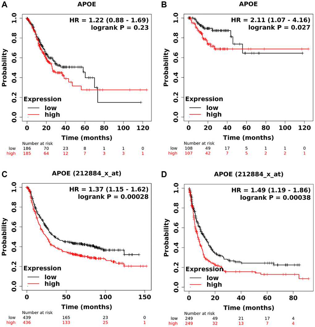 - 26. Su WP, Chen YT, Lai WW, Lin CC, Yan JJ, Su WC. Apolipoprotein E expression promotes lung adenocarcinoma proliferation and migration and as a potential survival marker in lung cancer. Lung Cancer. 2011; 71:28–33. https://doi.org/10.1016/j.lungcan.2010.04.009 [PubMed]