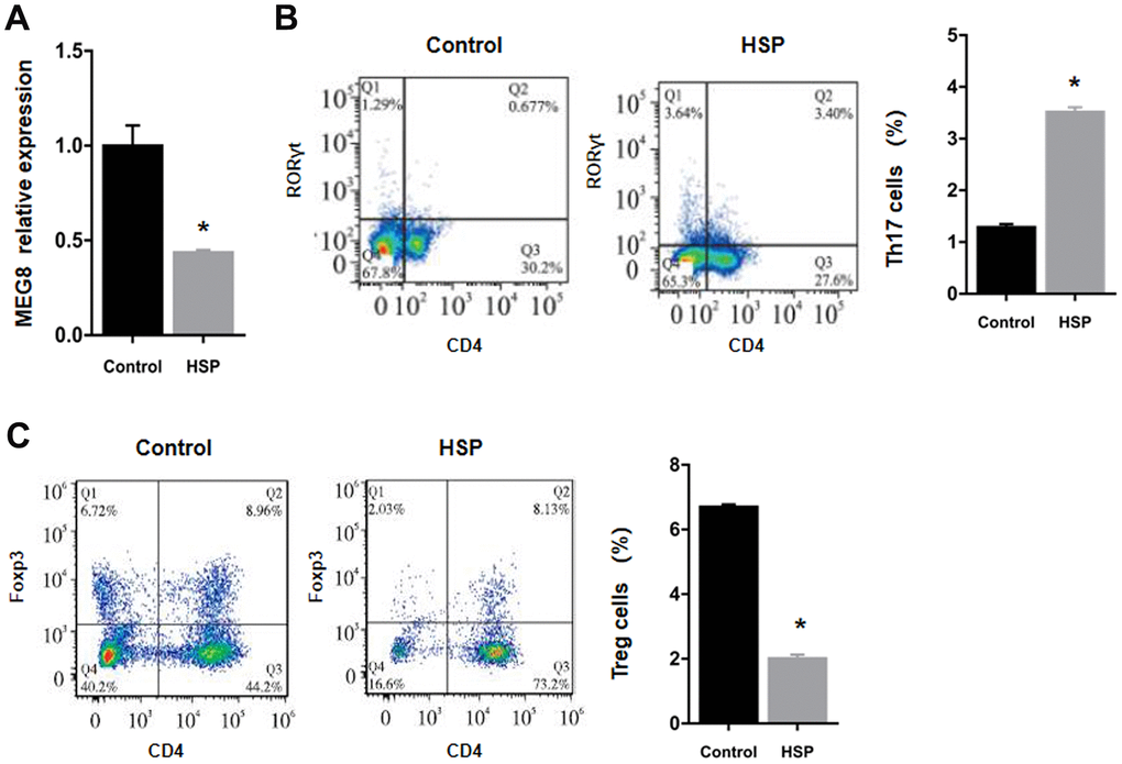 Low expression of MEG8 and Treg cells in HSP rats