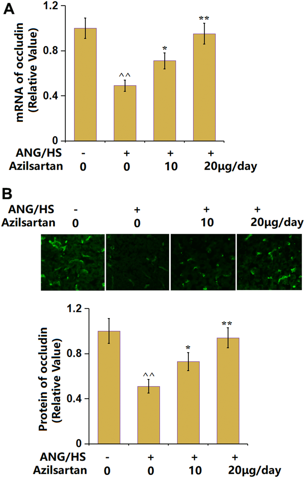 The effects of Azilsartan on the expression of occludin in renal tissues in ANG/HS-challenged mice