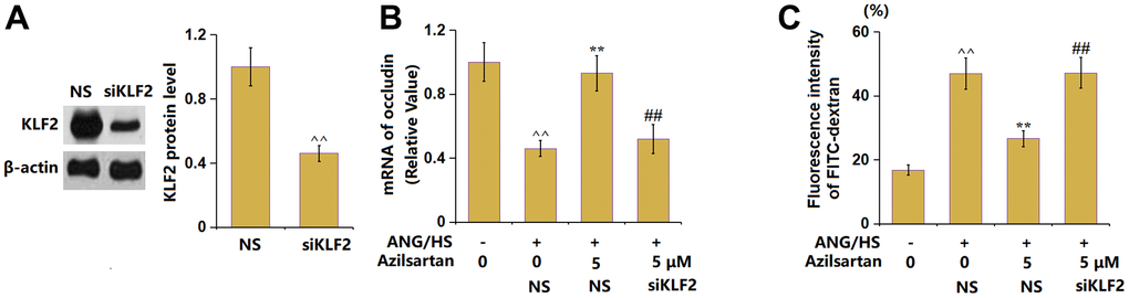 Collectively, Azilsartan alleviated ANG/HS-induced increase in UAE mediated by the KLF2/occludin axis.
