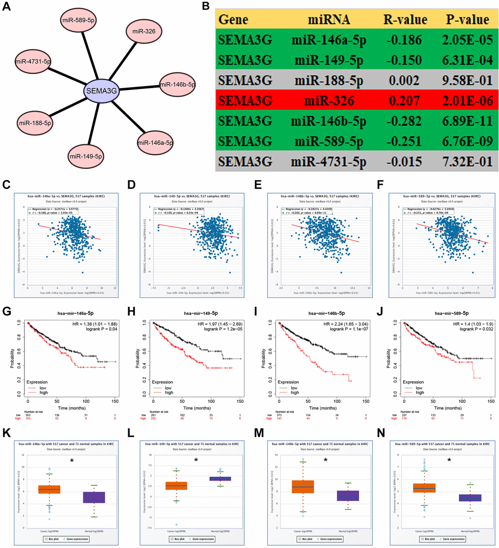 Prediction and analysis of upstream miRNAs of SEMA3G in KIRC