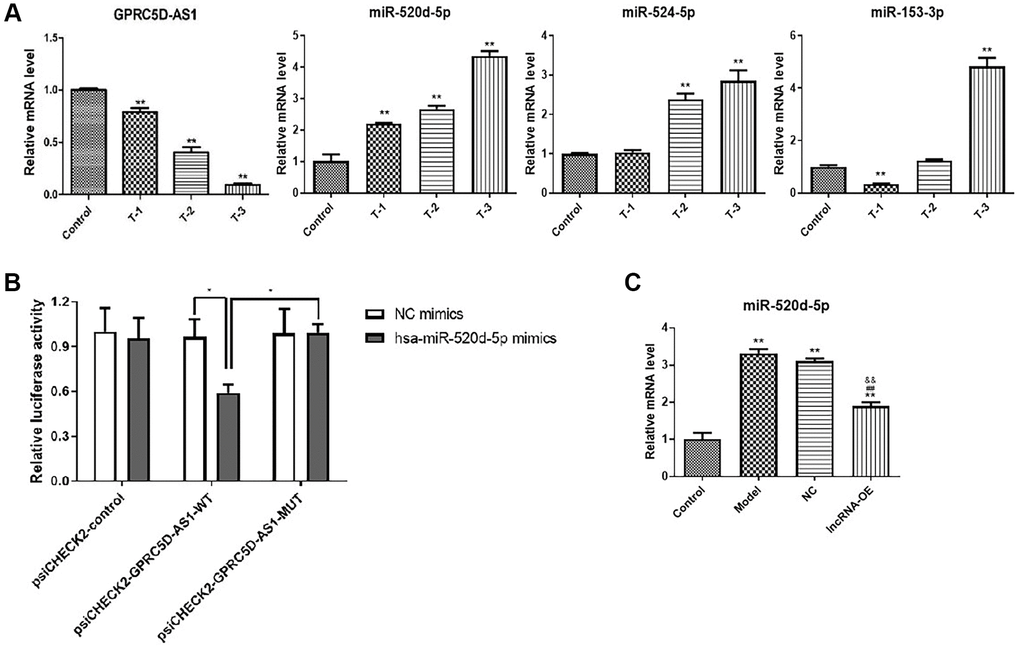 Prediction and validation of miR-520d-5p as one of target miRNAs of GPRC5D-AS1