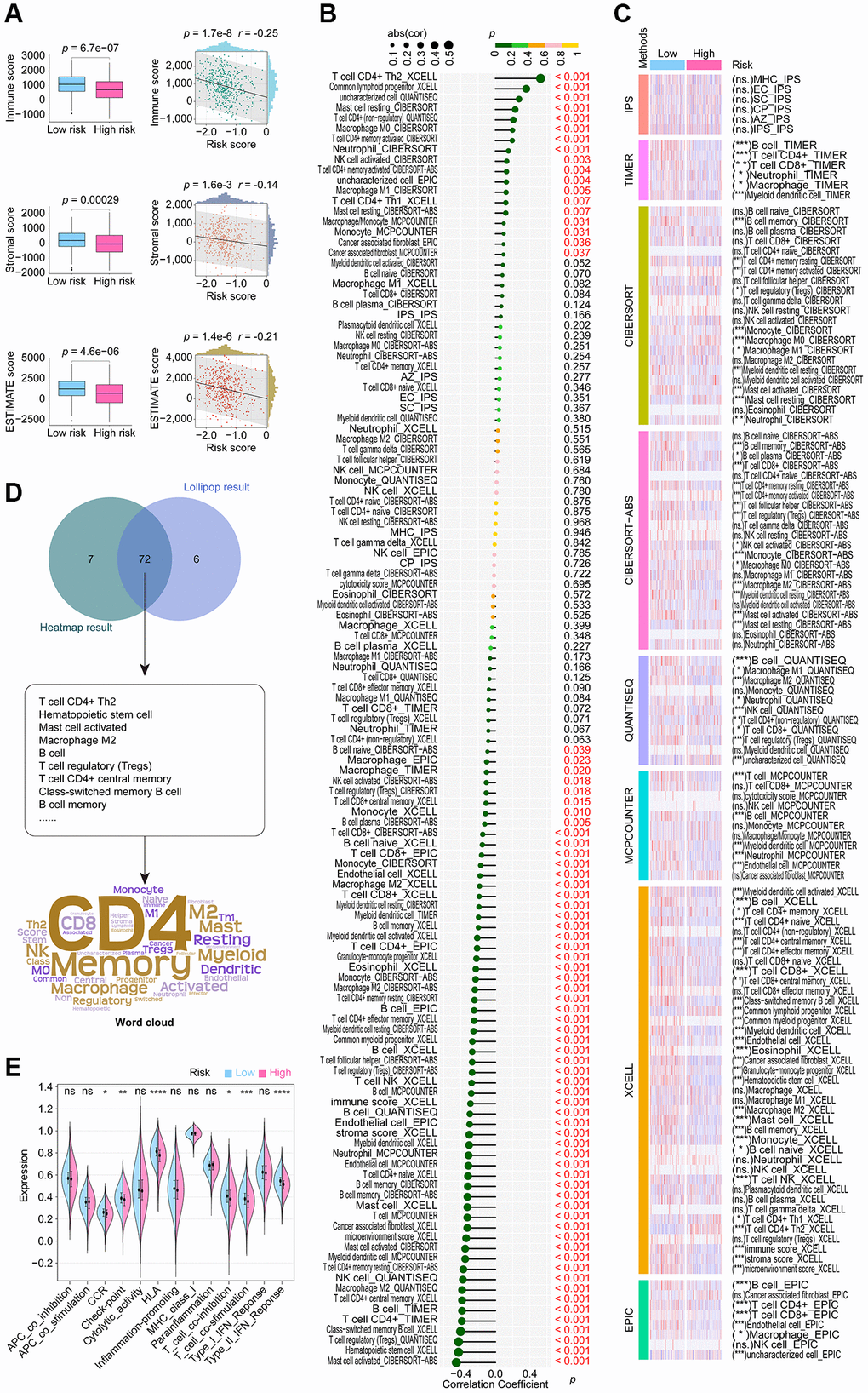 The R package “ESTIMATE” utilizes the gene expression levels of the training cohort to compute stromal, immune, and ESTIMATE scores for individual patients [18]. We evaluated the correlation between CoCuLncSig and the above category scores using statistical analysis methods like the Pearson coefficient and the Wilcoxon rank sum test. With R package “IOBR,” immuno-oncology exploration can be facilitated, tumor-immune interactions can be explored, and precision immunotherapy can be expedited [19]. The R package “IOBR” or its algorithms included, namely CIBERSORT [20], CIBERSORT-ABS [20], quanTIseq [21], TIMER [22], MCPCounter [23], xCell [24], EPIC [25], and IPS [26] were applied to assess immune-infiltrating levels of every LUAD in the TCGA-LUAD. To assess the relationship between CoCuLncSig and immune-infiltrating levels, we employed the Pearson coefficient and the Wilcoxon rank sum test, and the outcomes were presented as lollipop plots and heatmaps. We summarized the aforementioned findings through Venn and cloud diagrams, and assessed the immune function of CoCuLncSig utilizing the ‘ssGSEA’ function available in the ‘gsva’ R package.