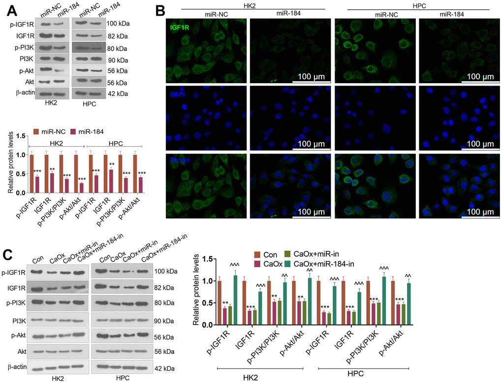 miR-184 knockdown weakened renal cell damage mediated by CaOx