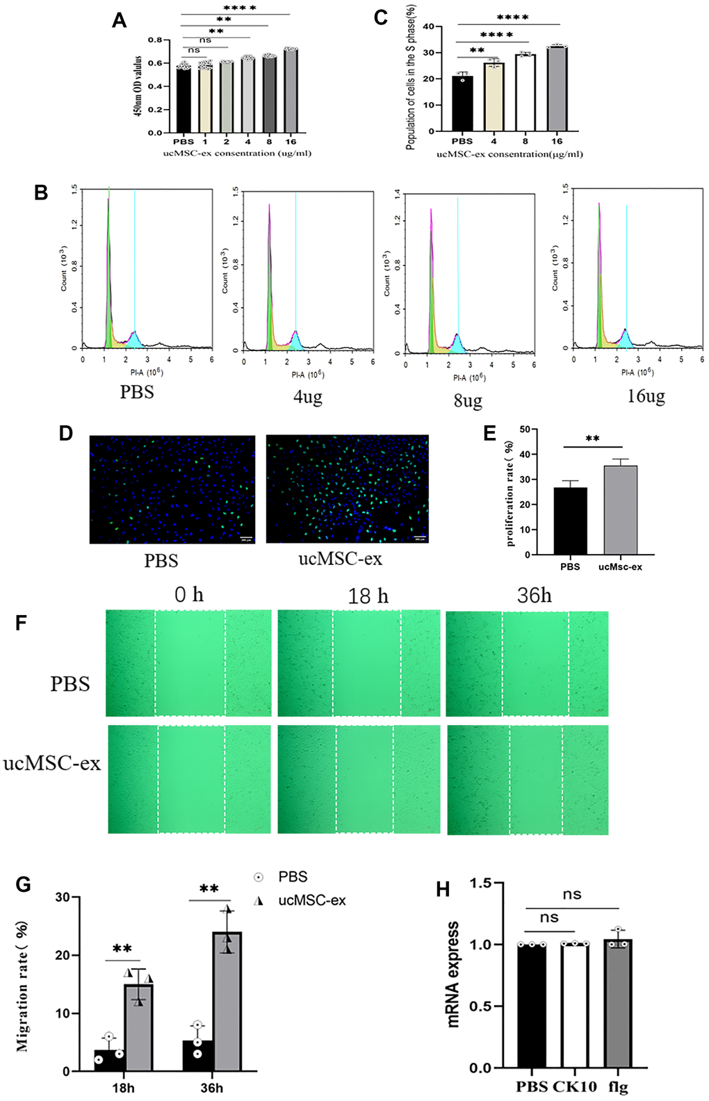 The objective of this study was to explore the impact of ucMSC-ex on the proliferation, migration, and differentiation of VK2 vaginal epithelium and to assess whether these influences translate positively to the vaginal epithelium in vivo.