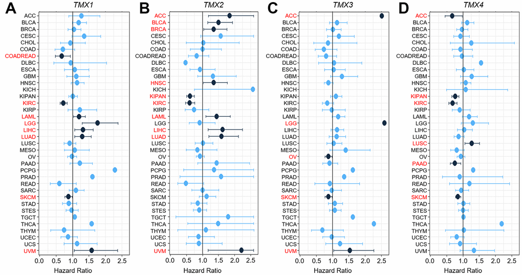 | TMX4 | Protective | KIRC, KIRP, LUAD, PRAD, UCEC | KIRC | ACC, KIPAN, KIRC, PAAD, SKCM |