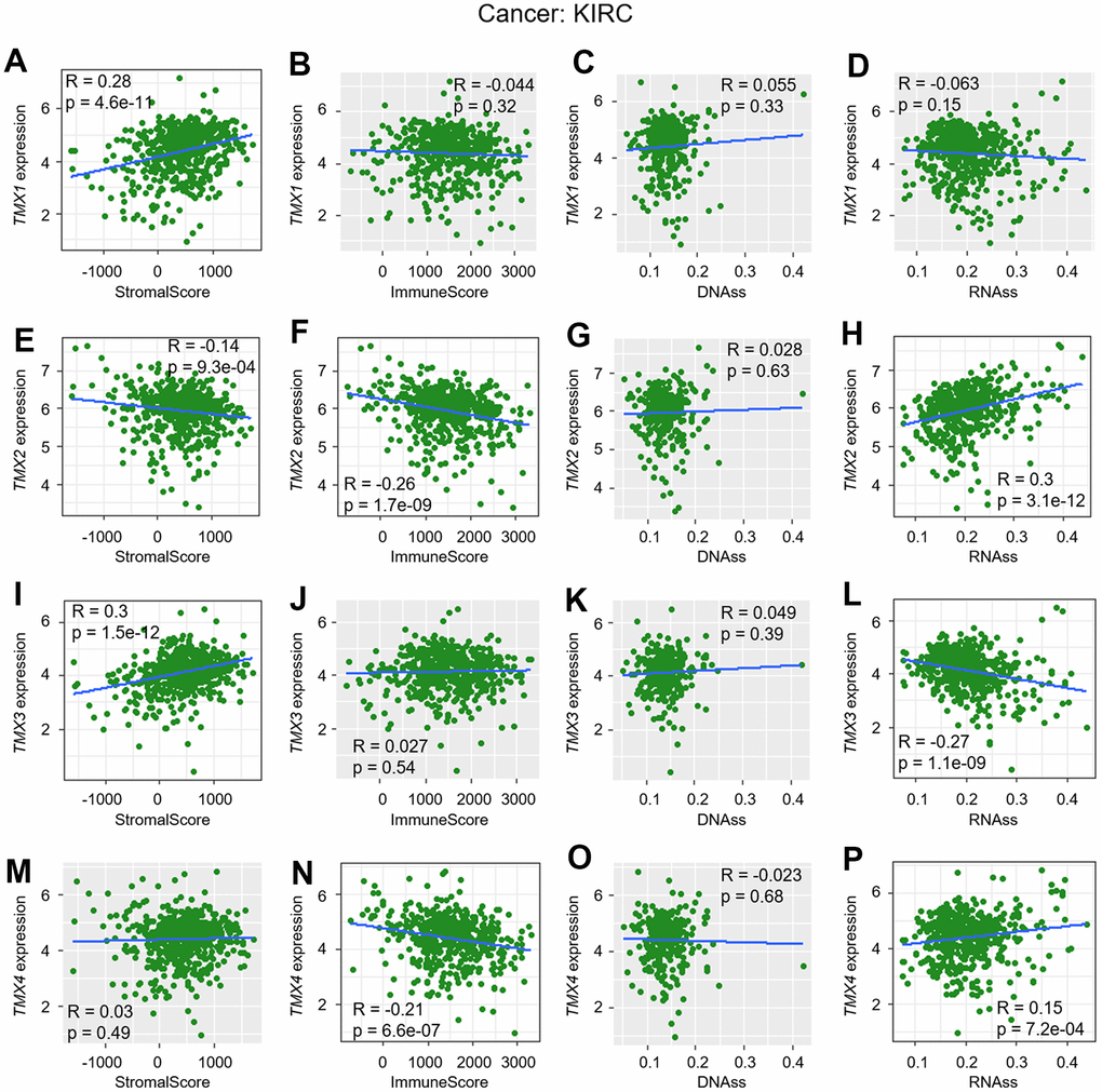 The ESTIMATE algorithm was performed to assess the relationship of TMX family genes expression with the extent of immune cell infiltration and stromal cells in various cancer types by calculating StromalScore and ImmuneScore. The Pearson correlation coefficient was employed to examine the relationship between tumor microenvironment and TMX family genes expression. The correlation of TMX family genes expression with DNA stemness score (DNAss) and RNA stemness score (RNAss) were analyzed using R-packages “cor.Test”, “ggpubr” and “limma”. A positive correlation was indicated by R > 0, while a negative correlation was indicated by R < 0. A p-value of less than 0.05 was considered to be a significant difference.