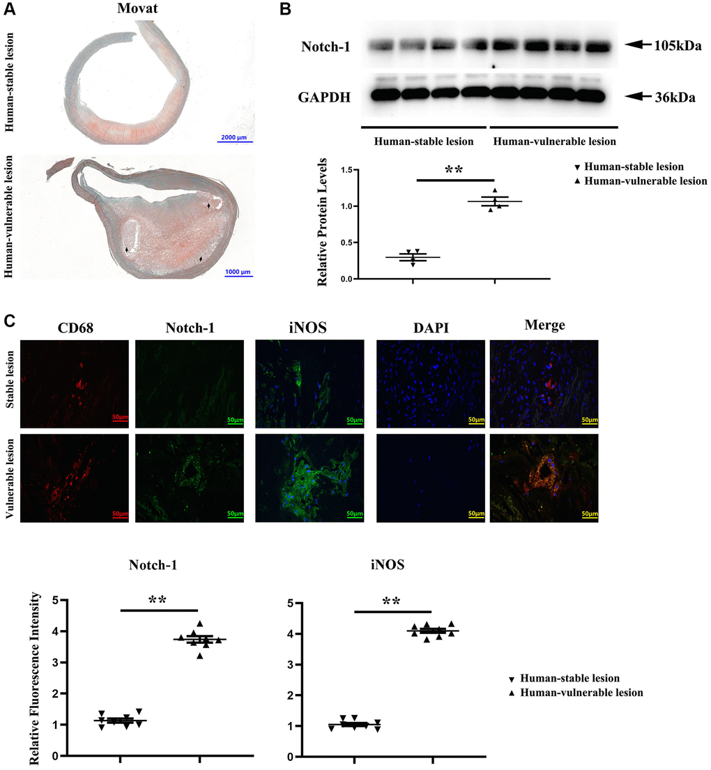 Increased Notch-1 and iNOS expressions in human vulnerable atherosclerotic lesions