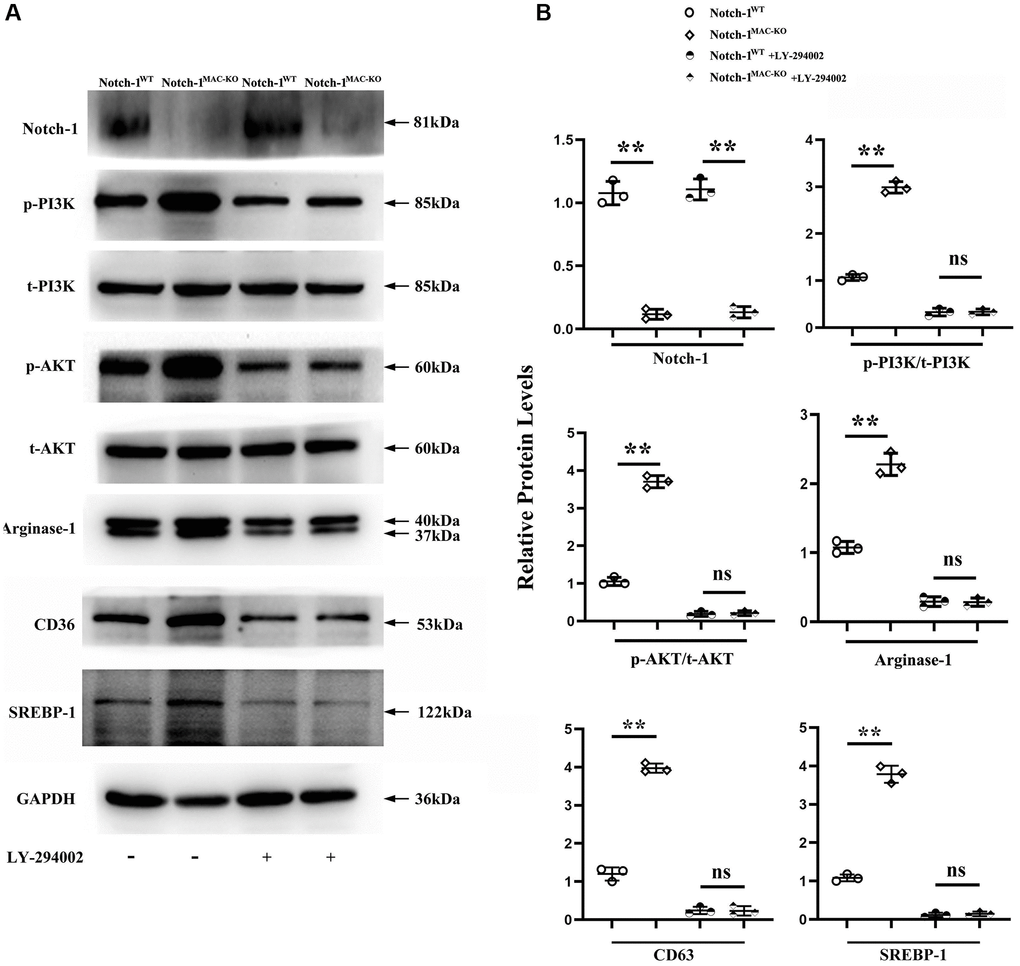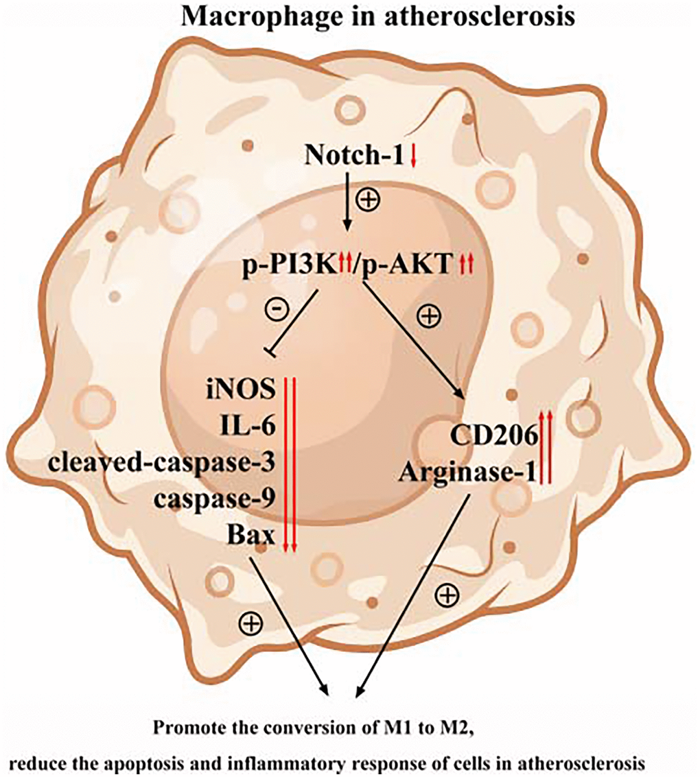 In conclusion, this study validated the protective effect of Notch-1MAC-KO against AS in vivo and in vitro. The PI3K/AKT signaling pathway is involved in the Notch-1MAC-KO-induced M2 polarization and further reduces apoptosis and inflammatory response in AS. The present work revealed Notch-1 as a novel therapeutic target for AS through targeting the PI3K/AKT signaling pathway. Therefore, the Notch-1/PI3K/AKT signaling pathway may serve as a novel approach for prevention and treatment of AS.