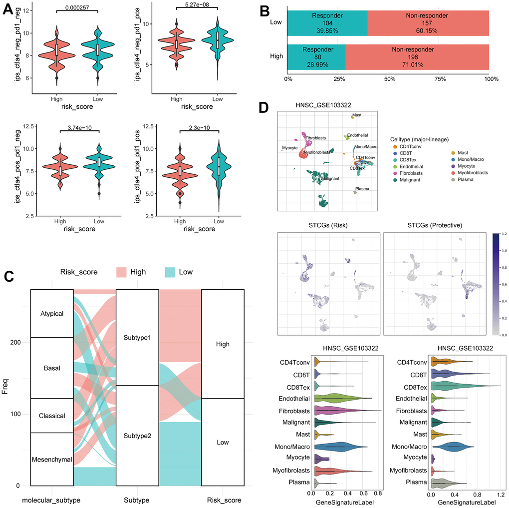 CIBERSORT utilized a gene expression signature matrix derived from purified immune cell populations to deconvolute the composition of complex tissue samples [43]. It leverages support vector regression and an artificial immune system-like algorithm to estimate the relative proportions of different immune cell types in HNSC sample. The accuracy of immune cell fractionation was considered significant when the CIBERSORT output achieved a p-value of less than 0.05. For each HNSC sample, the stromal and immune scores were estimated by applying the ESTIMATE algorithm to the normalized expression matrix [44]. Data on individual immunophenoscore (IPS) for HNSC patients were obtained by downloading from the Cancer Immunome Atlas (https://tcia.at/home).