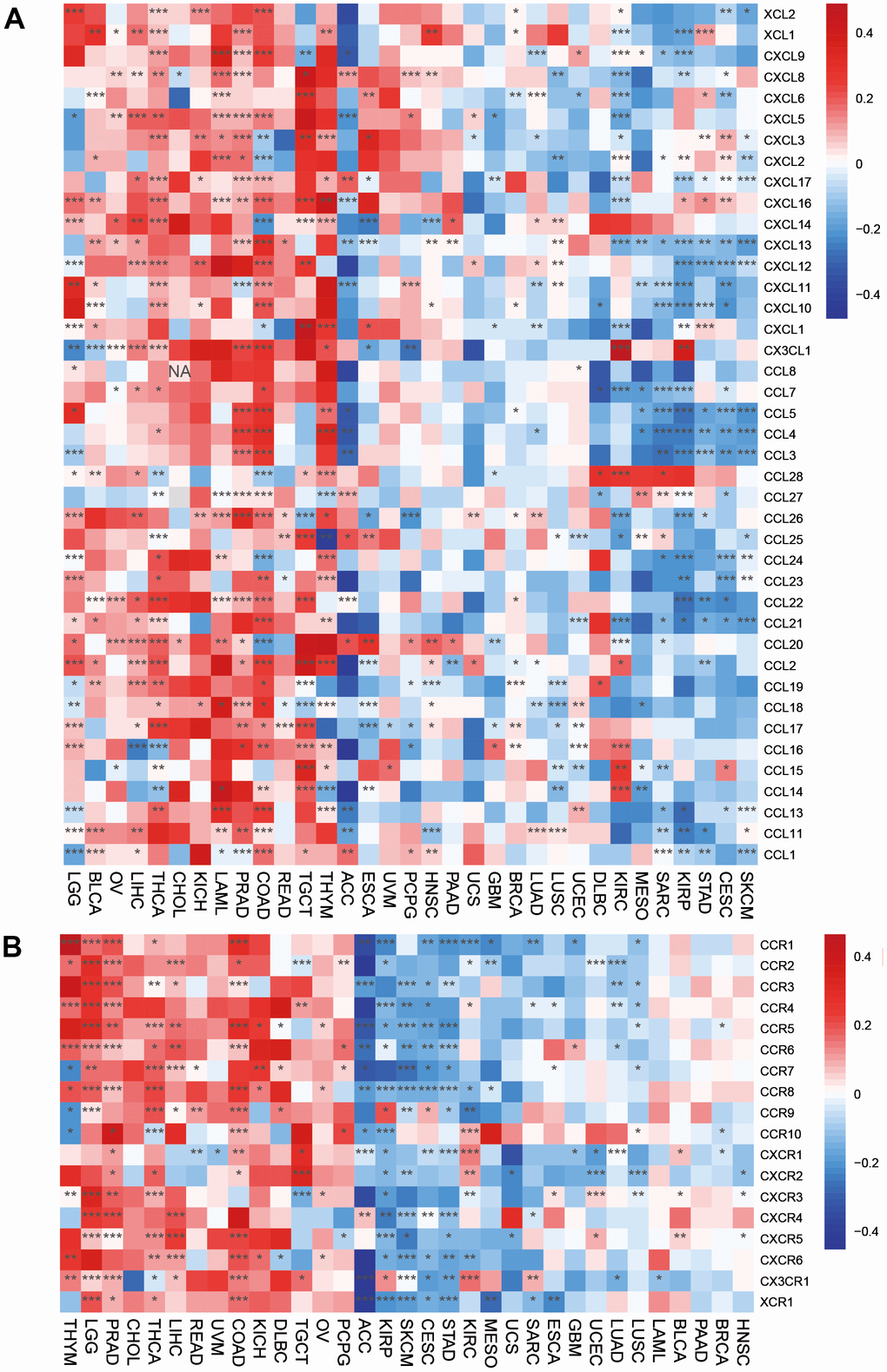 The directed migration of immune cells is a necessary condition for the occurrence and completion of immune response. Chemokines are a class of cytokines that control cell directed migration. Its function is mediated by chemokine receptors. The interaction between chemokines and their receptors controls the directional migration of various immune cells in the circulatory system and tissues and organs, so that they can go to the site of abnormal proliferation, destroy abnormal proliferation cells, and maintain the function of tissue cell balance. Our results suggested that chemokines and their receptors were positively associated with HOXC10 expression in LGG, THYM, PRAAD, CHOL, LIHC, READ, KICH, DLBC, and TGCT but were remarkably negatively associated with HOXC10 expression in ACC, SKCM, CESC, STAD, KIRP (Figure 6A, 6B).