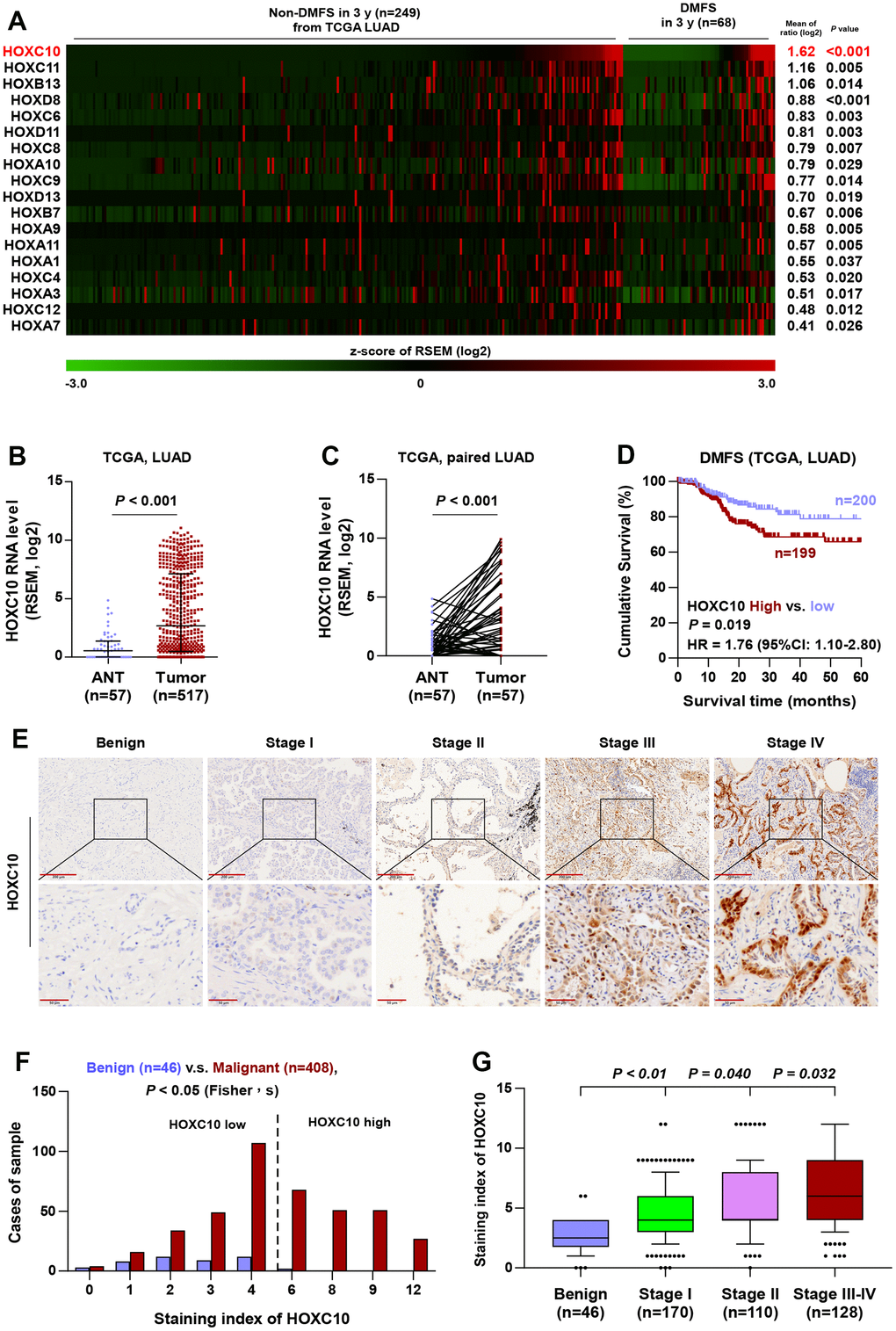 Overexpression of HOXC10 in human LUAD samples indicates advanced progression and poor prognosis