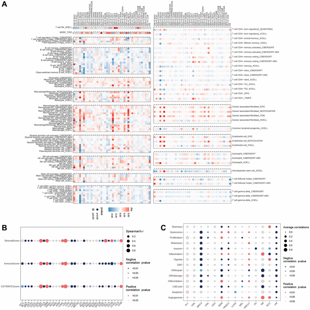 Many studies have performed immune cell infiltration analysis to understand the correlation between genes and tumor immune cells [84–86]. The correlation analysis data of LTBR with immune cells in terms of each algorithm was obtained from the TIMER2.0 database (http://timer.cistrome.org/). The results were finally visualized using the “ggplot2” R package. The ESTIMATE R package was used to calculate the ESTIMATEScore, ImmuneScore, and StromalScore for each tumor and to calculate the correlation coefficients between the LTBR and these three scores.