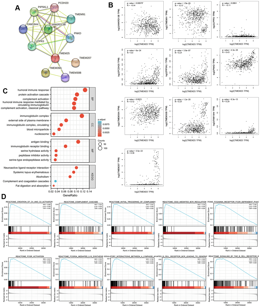 Enrichment analysis of protein-protein interaction network and functional pathway of TMEM25 in ccRCC