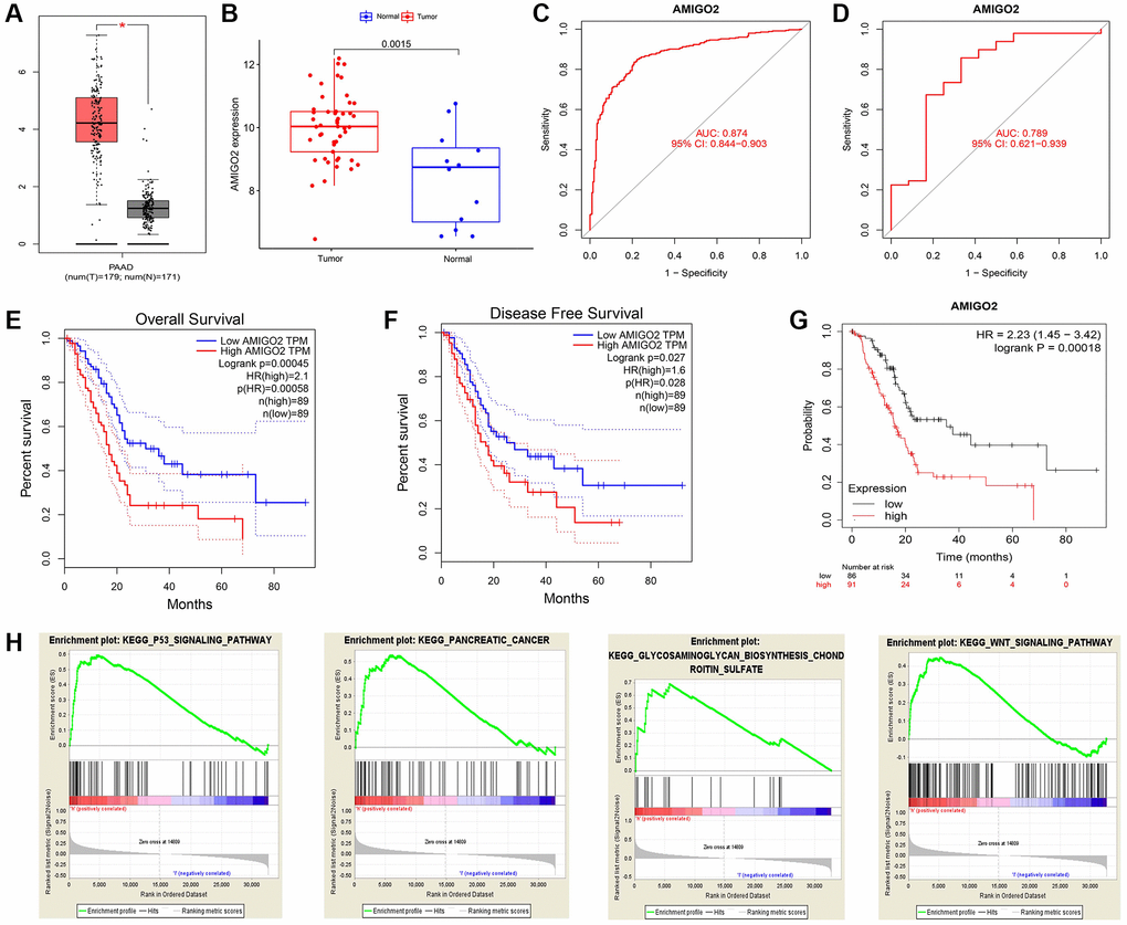 The diagnostic value, prognostic value and significant enriched pathway of AMIGO2 in PDAC