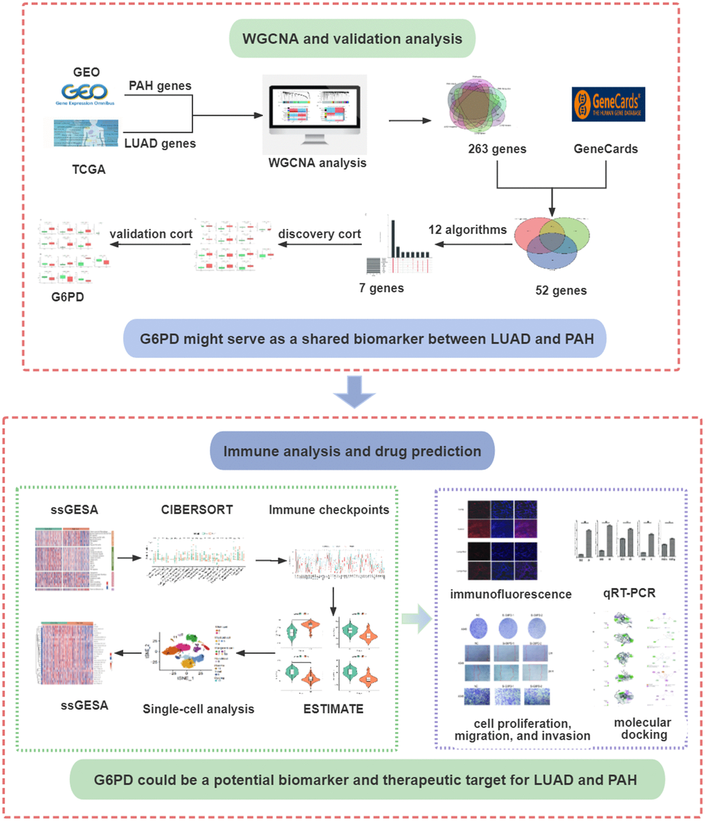 In conclusion, we identified the key gene to reveal the potential pathophysiology of LUAD and PAH and determined that G6PD is an immune-related biomarker and possible therapeutic target for LUAD and PAH patients.