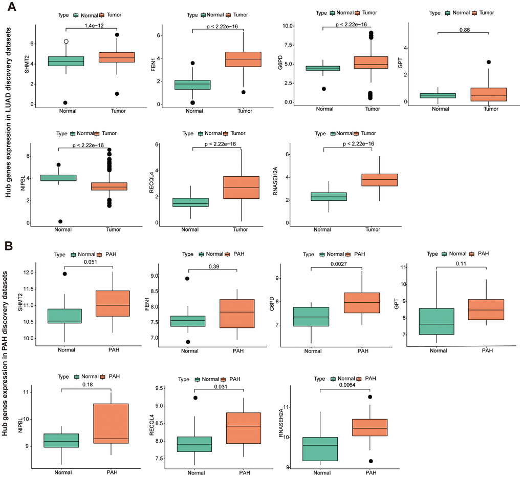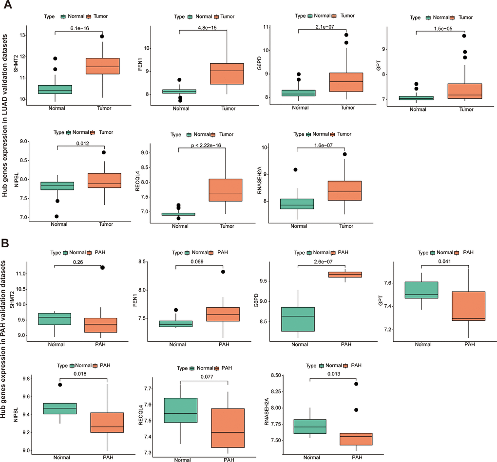 Hub genes validation in LUAD and PAH