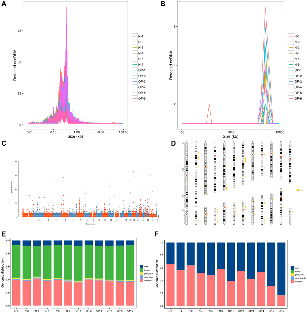 Comparing the distribution pattern of eccDNAs/ecDNAs between osteoporotic and normal bone tissue samples