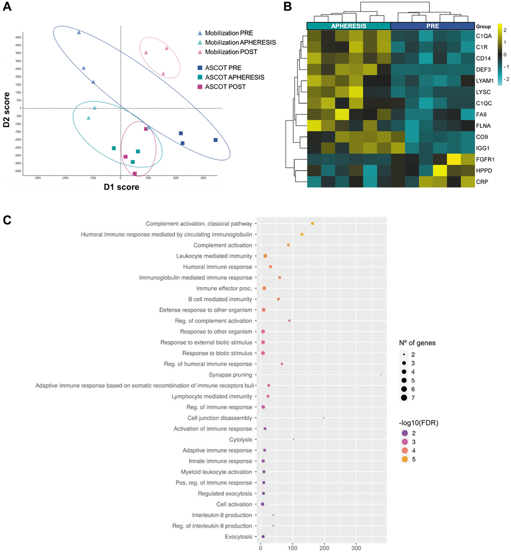 We found that only one protein (CO9) was commonly upregulated between the APHERESIS samples of patients with POR and POI after stem cell mobilization (Figure 4A).