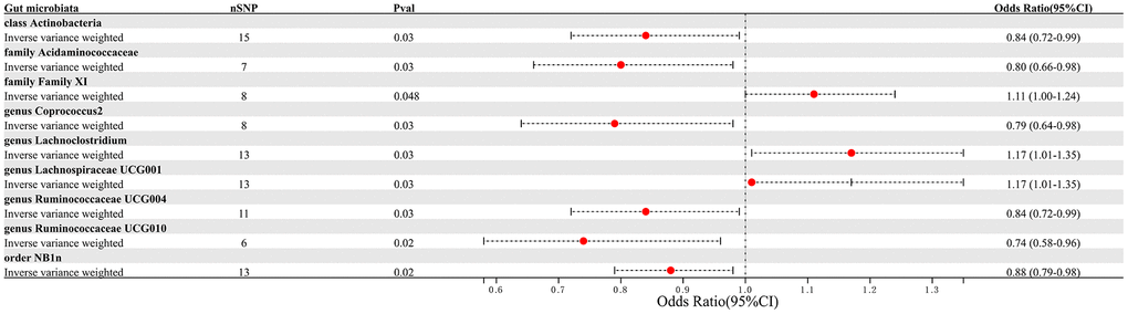 Table 3. Reverse MR analysis results for 9 specific microbiota communities.