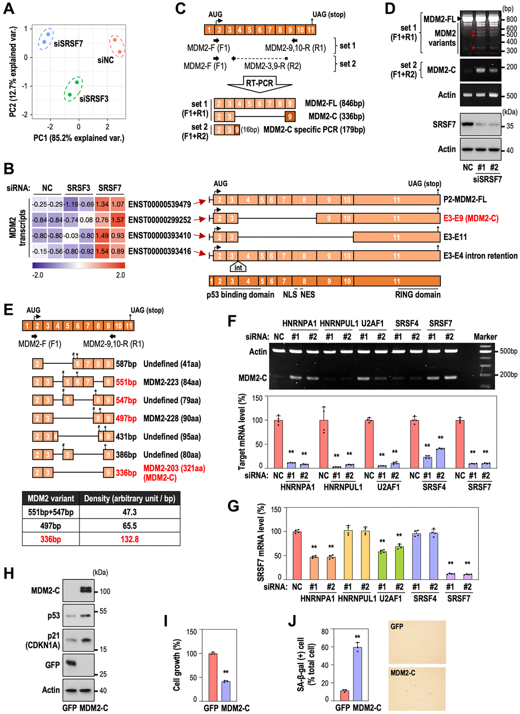 MDM2-C, a MDM2 AS variant, generated by SRSF7 depletion induces senescence