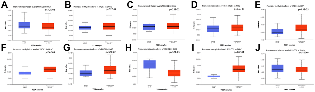 Pan-cancer analysis of the methylation level and genetic alteration of XRCC1