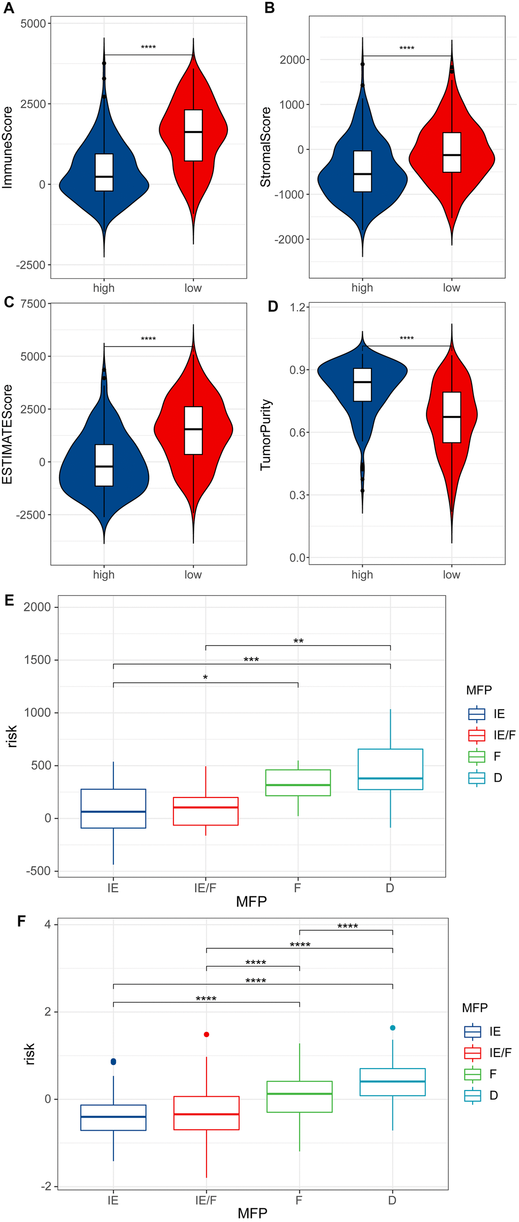 The tumor microenvironment is closely related to the immunotherapy efficacy of tumor patients [29]. Researchers have classified the tumor microenvironment (TME) into four categories using 29 different functional gene sets: immune-enriched, non-fibrotic (IE); immune-enriched, fibrotic (IE/F); fibrotic (F); and immune-depleted (D) [30].