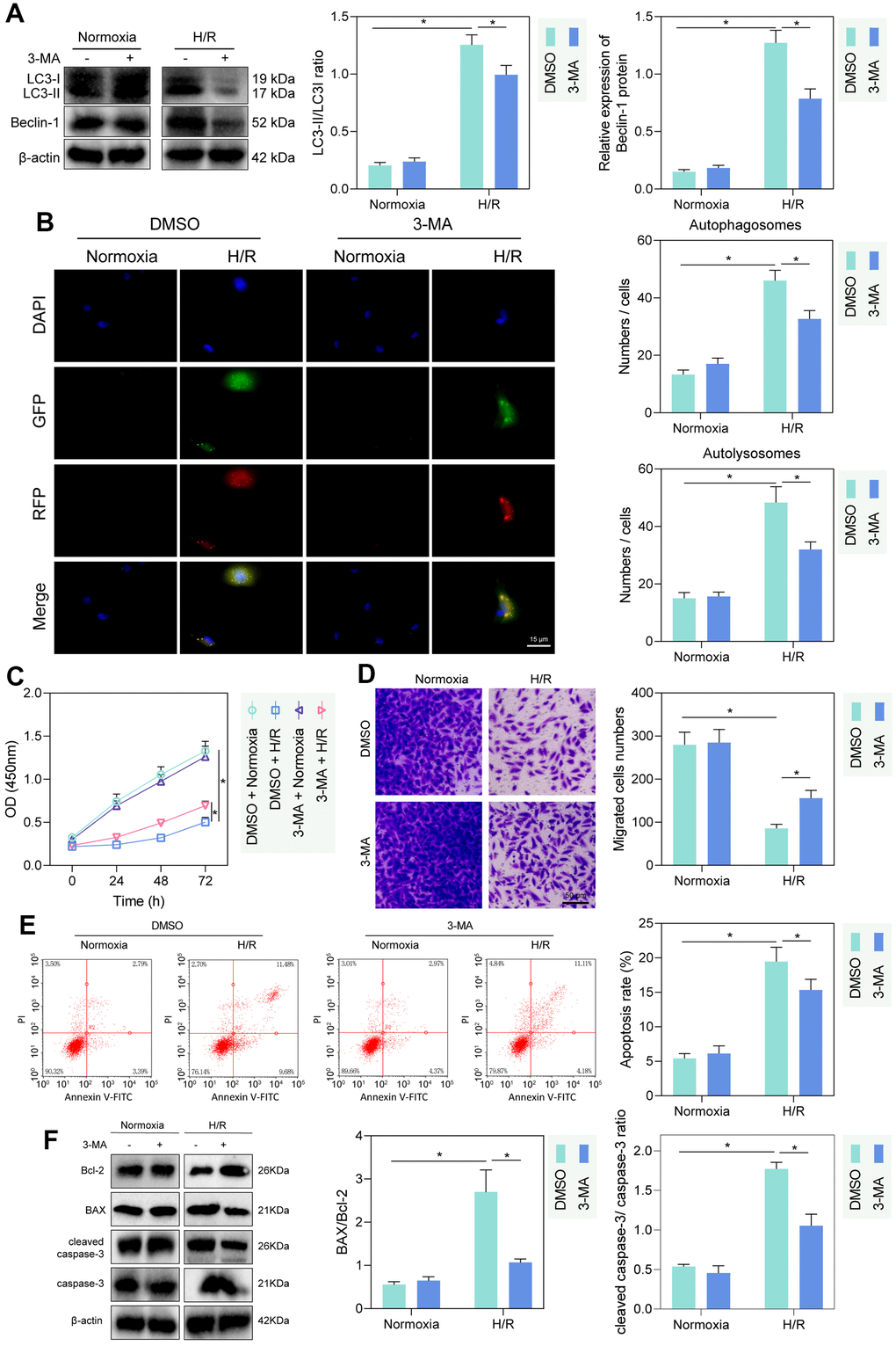 Moreover, the fluorescence detection results also showed that the number of autophagosomes and autophagolysosomes increased gradually with the increase of hypoxia time (Supplementary Figure 2C). These results suggested that the autophagy level of H/R-induced cells increased significantly and gradually in a time-dependent hypoxia. In combination with the relevant results of the existing literature [20, 21], we selected 8 h hypoxia induction time for subsequent study.