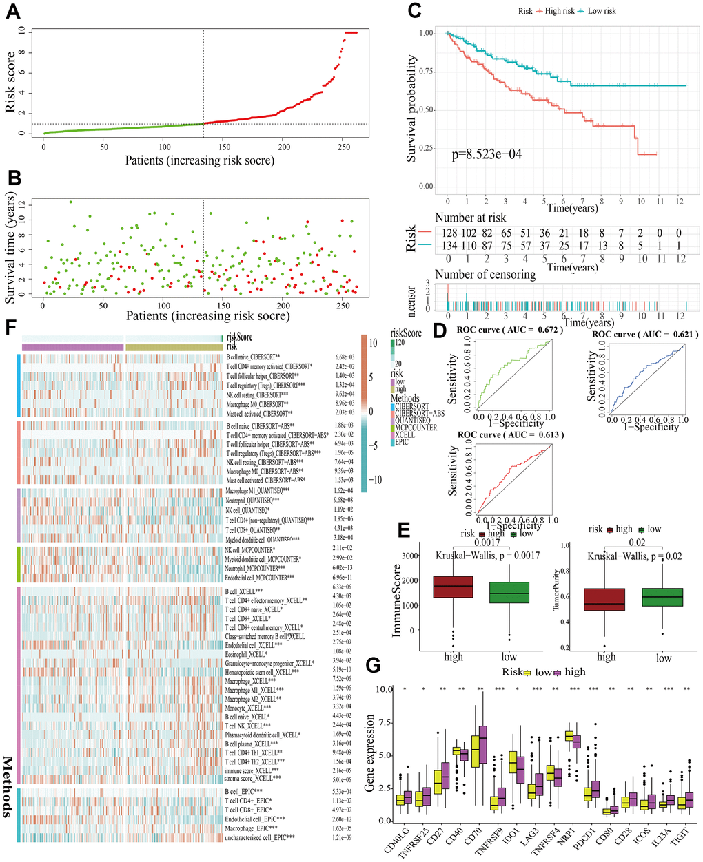 For investigation of the tumor microenvironment (TME) in the three clusters, the “ESTIMATE” package in R and various immune-related algorithms including TIMER, QUANTISEQ, MCPCOUNTER, XCELL, EPIC, and CIBERSORT were utilized for further analyses [19]. Additionally, the expression levels of common immune checkpoint genes were compared in the three clusters utilizing Kruskal-Wallis test. By applying the ssGSEA, the immune response was estimated. Next, we delved into the correlations between MAPK signaling and the infiltration of immune cells, and the findings were visually presented in a heatmap.
