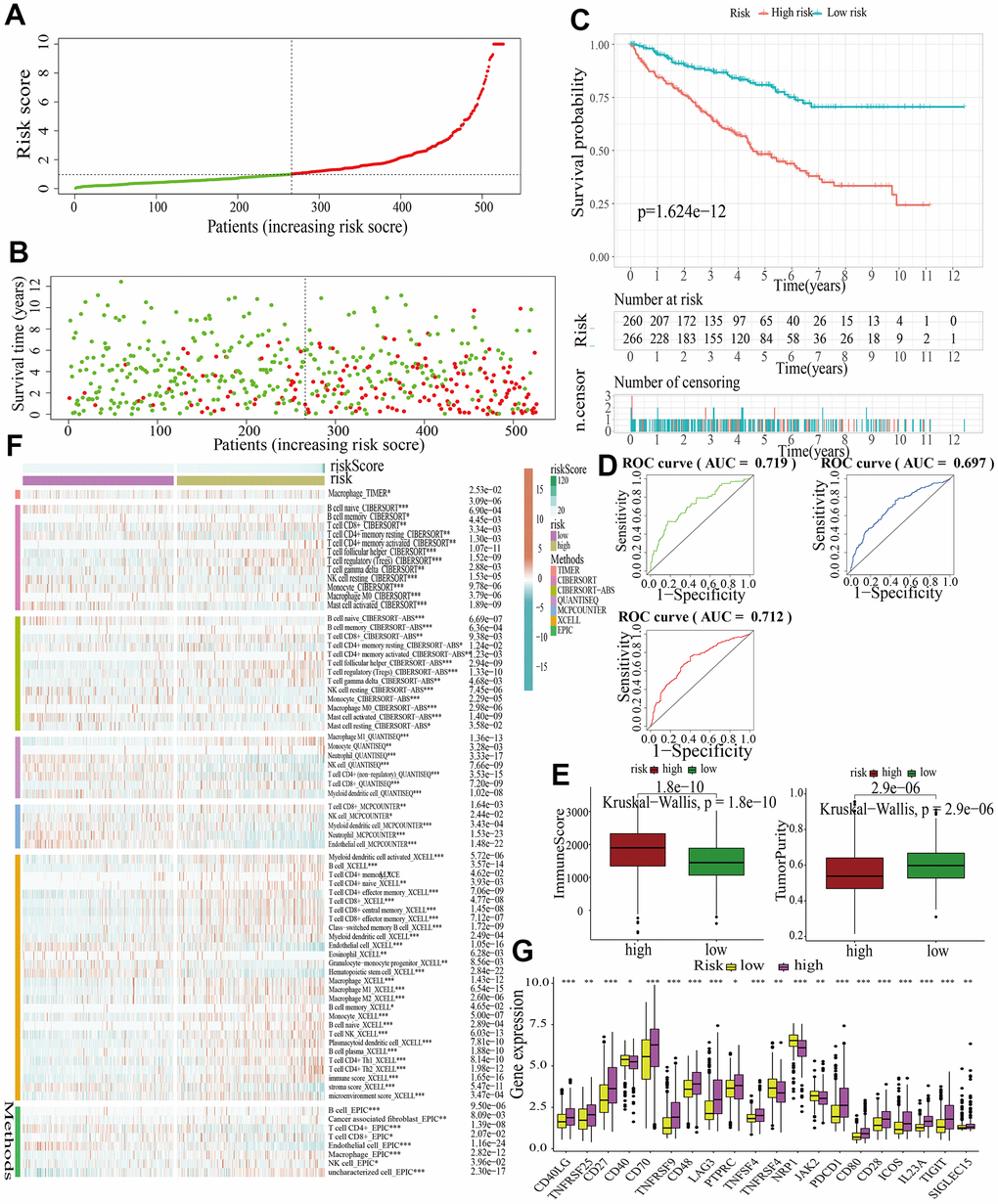 Based on the MAPKS, the risk scores of all KIRC samples were calculated and two subgroups (i.e., high-risk subgroup and low-risk subgroup) were obtained in accordance with the risk score of the train cohort. The MAPKS helped to differentiate high-risk samples characterized by lower survival rates, higher immune scores, and reduced tumor purities. Of note, the elevated presence of Treg cells and the atypical expression of immune checkpoint molecules could potentially contribute to its adverse prognosis. As is reported, Treg cells can suppress effective tumor immunity. It was found that increasing infiltration of Treg cells was linked to poor prognosis of patients with tumors [66, 67]. In addition, tumor cells could disguise themselves as common components of the human body through immune checkpoint pathways [68]. As a consequence, the up-regulation of most ICGs in high-risk subgroup might account for the poor prognosis. All the discrepancies might be the potential therapy targets in KIRC and all the results above were demonstrated in the three test cohorts. In addition, the single-cell RNA sequencing (scRNA-seq) analysis of KIRC samples identified seven distinct cell types, which include B cells, myeloid cells, endothelial cells, NK cells, epithelial cells, T cells, and fibroblast cells. Endothelial cells in tumor tissues had obviously higher MAPK scores than normal tissues.