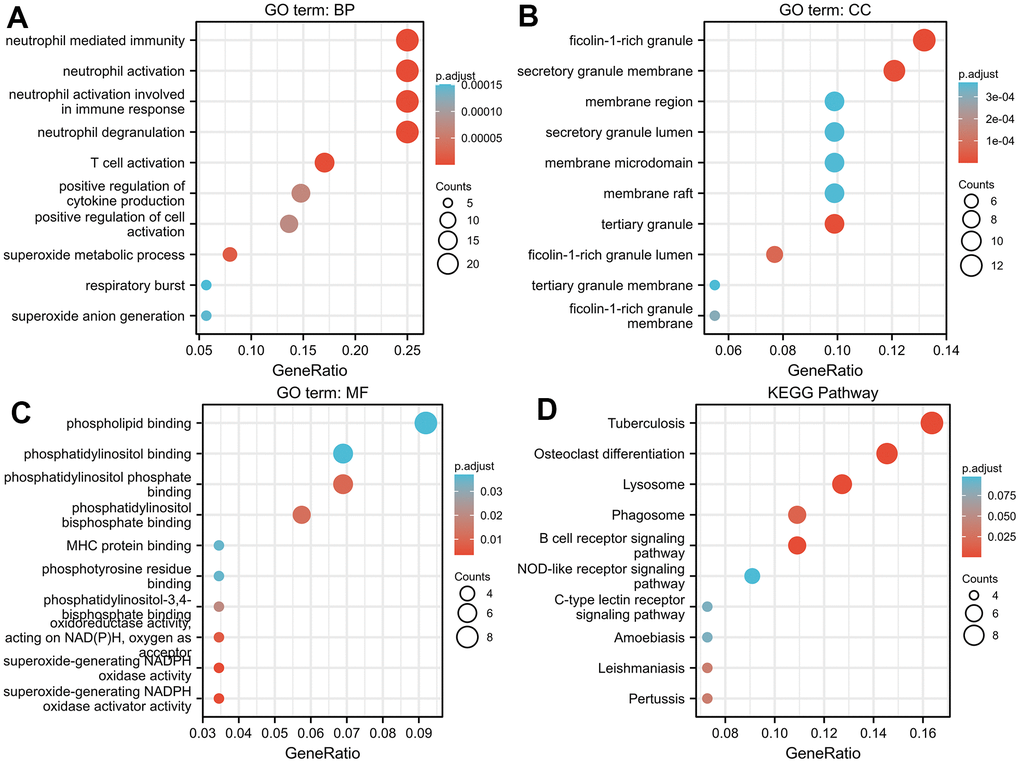 Genes correlated with TNFAIP2 based on the thresholds of |log2FC| > 2 and Padj < 0.05 were included in the analysis. GO including BP, CC, and MF categories, as well as KEGG pathing analyses, were performed by the R package clusterProfiler (see Supplementary File 1 for the specific code) [31].