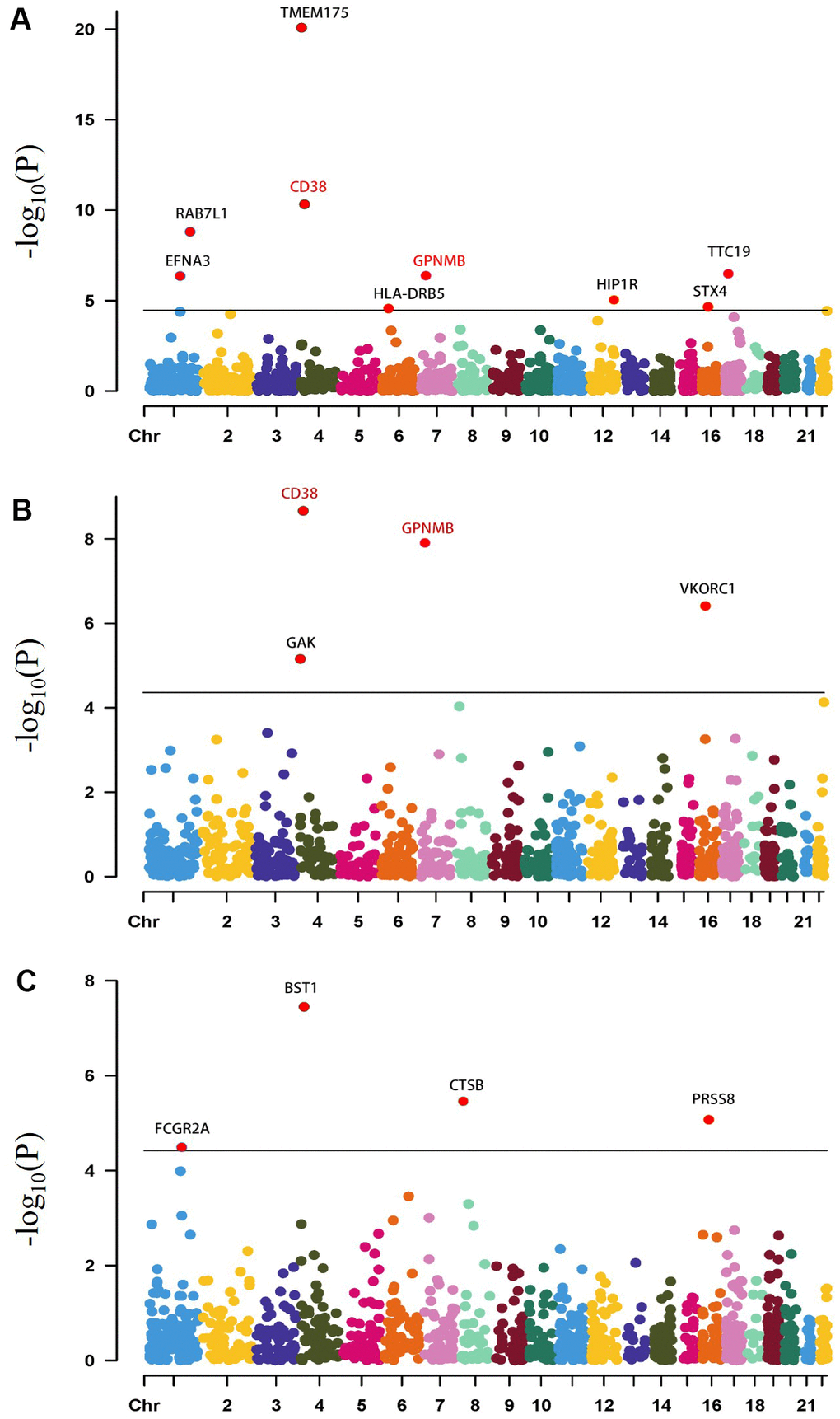 | TMEM175 | 4 | -9.36 | 8.14E-21 | - | - | - | - | - | - | - | - | - | - | - | - | Suggestive | |||||||||||||||||||||||||||||||||||||||||||||||||||||||||||||||||||||||||||||||||||