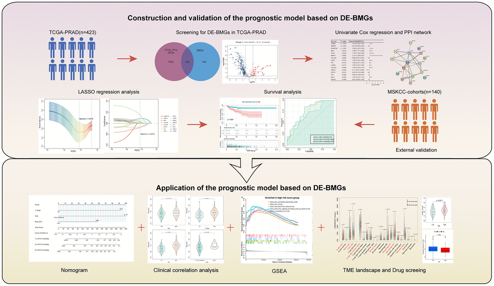 In conclusion, we developed a new BMGs-based prognostic model to determine the prognostic value of BMGs in PCa. Furthermore, BMRS correlates with TIME characteristics, ICIs, and chemotherapeutic drug sensitivity, which may provide potential evidence for patient treatment selection. In addition, the key gene THBS2 of BMGs may be an important link in the genesis and progression of PCa. This study provides a novel perspective to assess the prognosis of PCa patients and provides clues for the selection of future personalized treatment regimens.