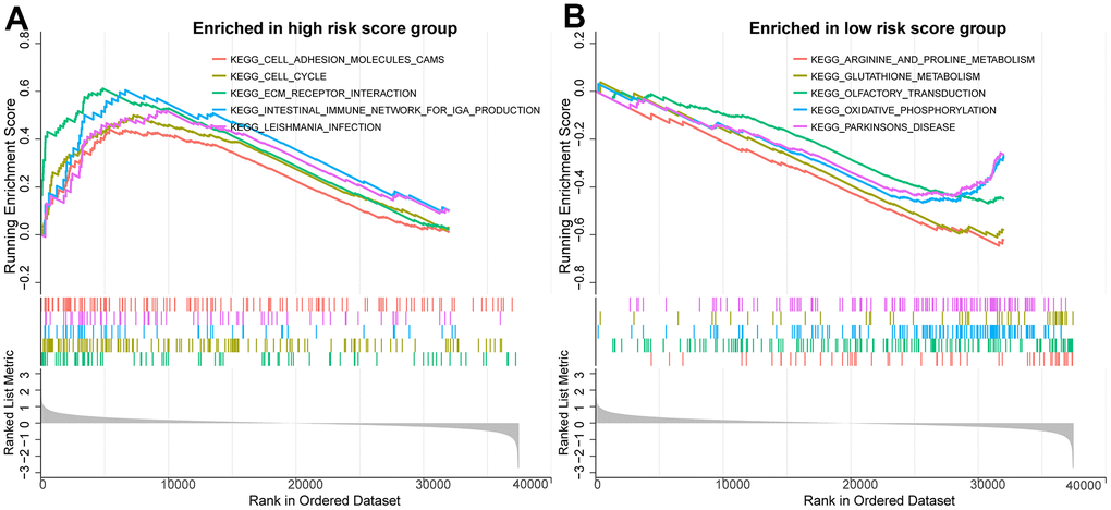 To further investigate the biological mechanisms potentially relevant to the prognostic risk assessment of BMRM, we performed a GSEA of DEGs between the high-risk and low-risk groups of the TCGA training set. We found that cell adhesion molecules, cell cycle and ECM receptor interaction pathways were more significantly enriched in the high-risk group. Among these, cell adhesion and cell cycle are both common signaling pathways in cancer research, mediating tumor proliferation, metastasis and treatment resistance [41]. Tumor cells interact with the ECM through receptors such as fibronectins and integrins, thereby transducing multiple signals to regulate critical cell differentiation, cell proliferation and migration [42].