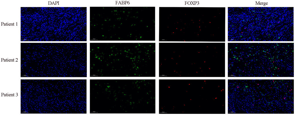 In our preceding investigation, we conducted exploratory analysis utilizing single-cell data from esophageal carcinoma, revealing a regulatory influence of FABP6 on Treg cells, demonstrating a positive correlation. To validate this regulatory relationship, we employed immunofluorescence techniques to ascertain the expression dynamics between FABP6 and the marker gene FOXP3 in Treg cells. The observed upregulation of FABP6 was associated with a notable enhancement in Treg cell proliferation, concurrently promoting heightened expression levels of FOXP3 (Figure 8).