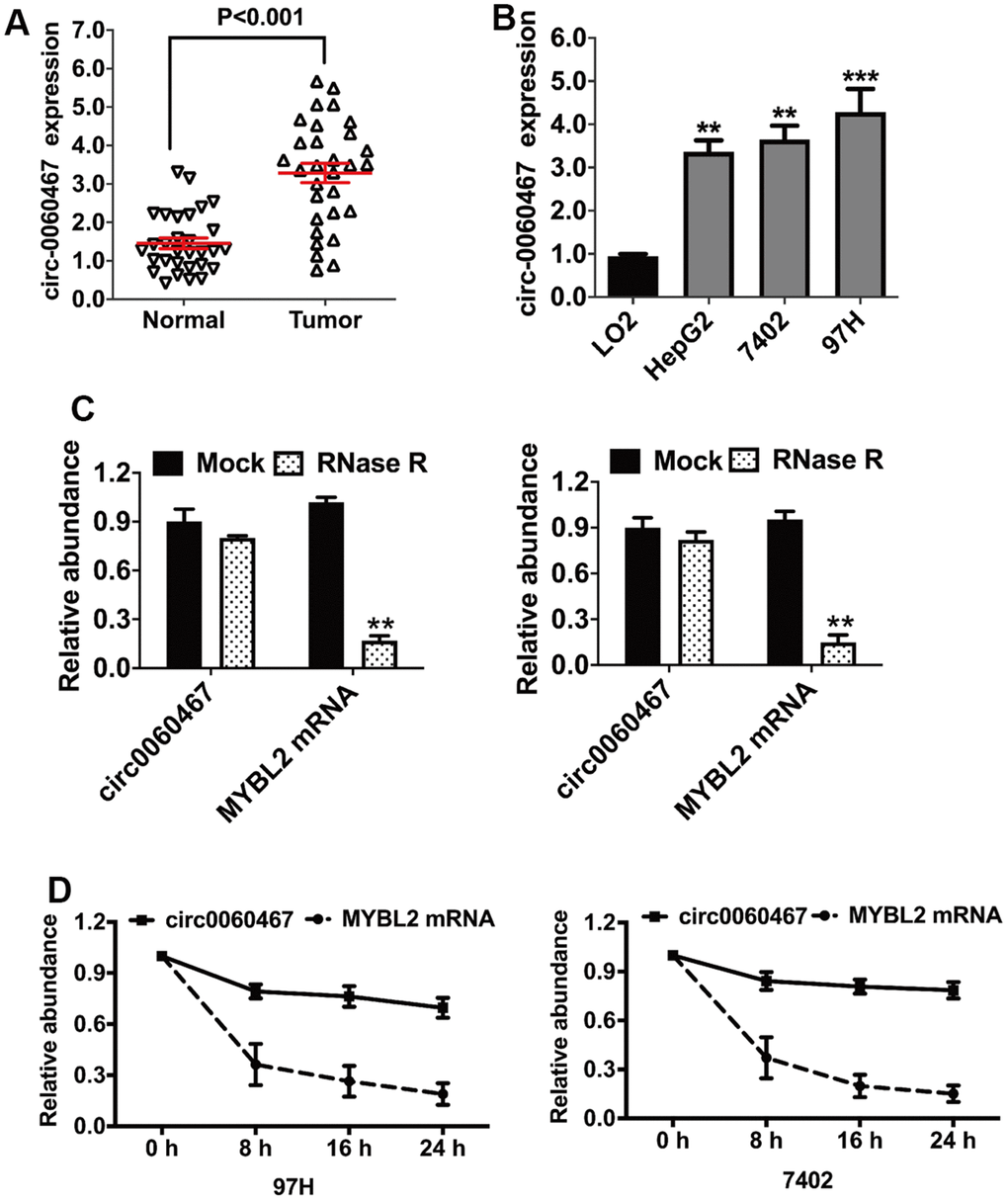 Elevated expression of circ0060467 in HCC cell lines and tissues