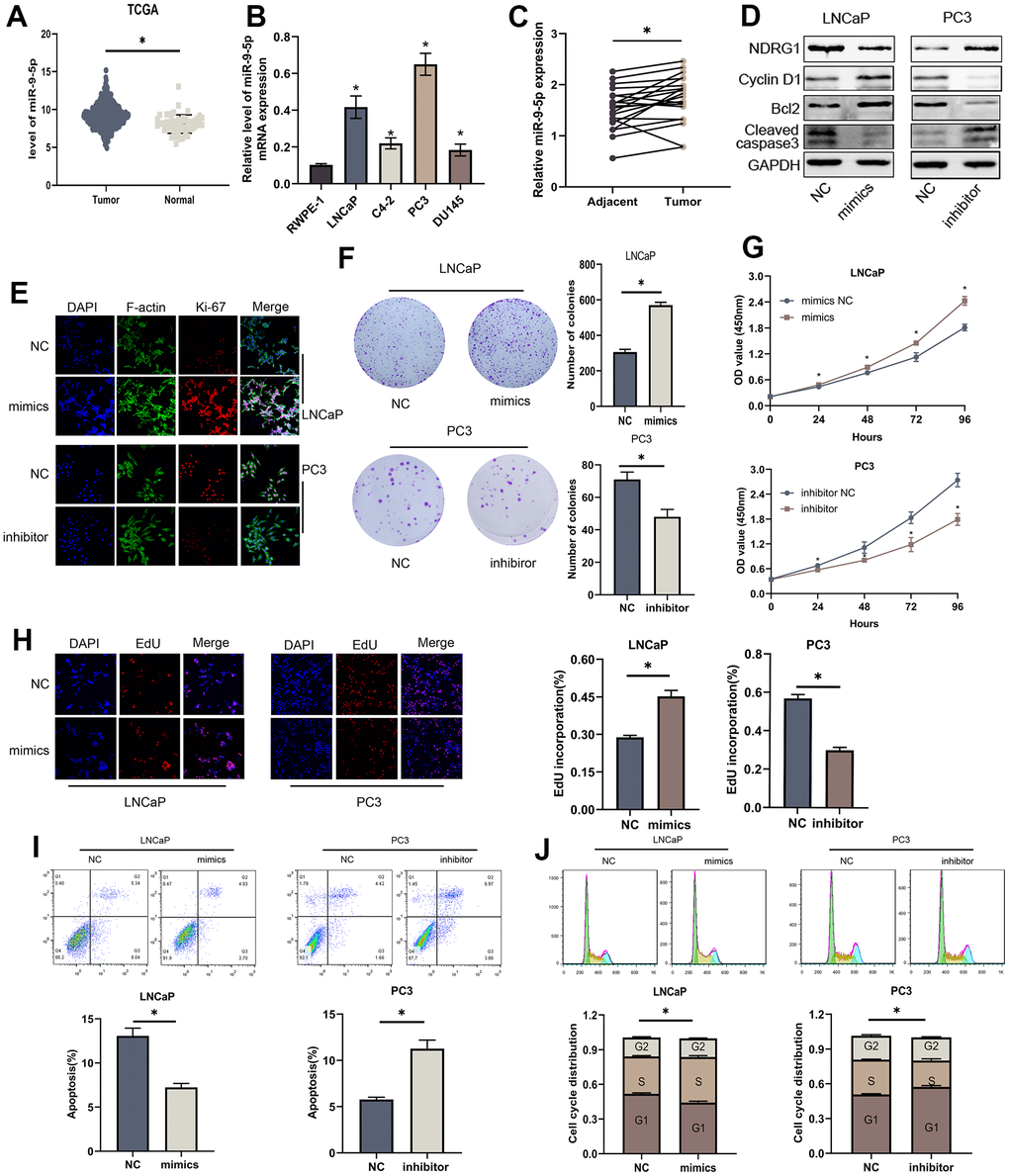 MiR-9-5p is also involved in the proliferation and apoptosis of PCa cells and NDRG1 is a downstream target of miR-9-5p