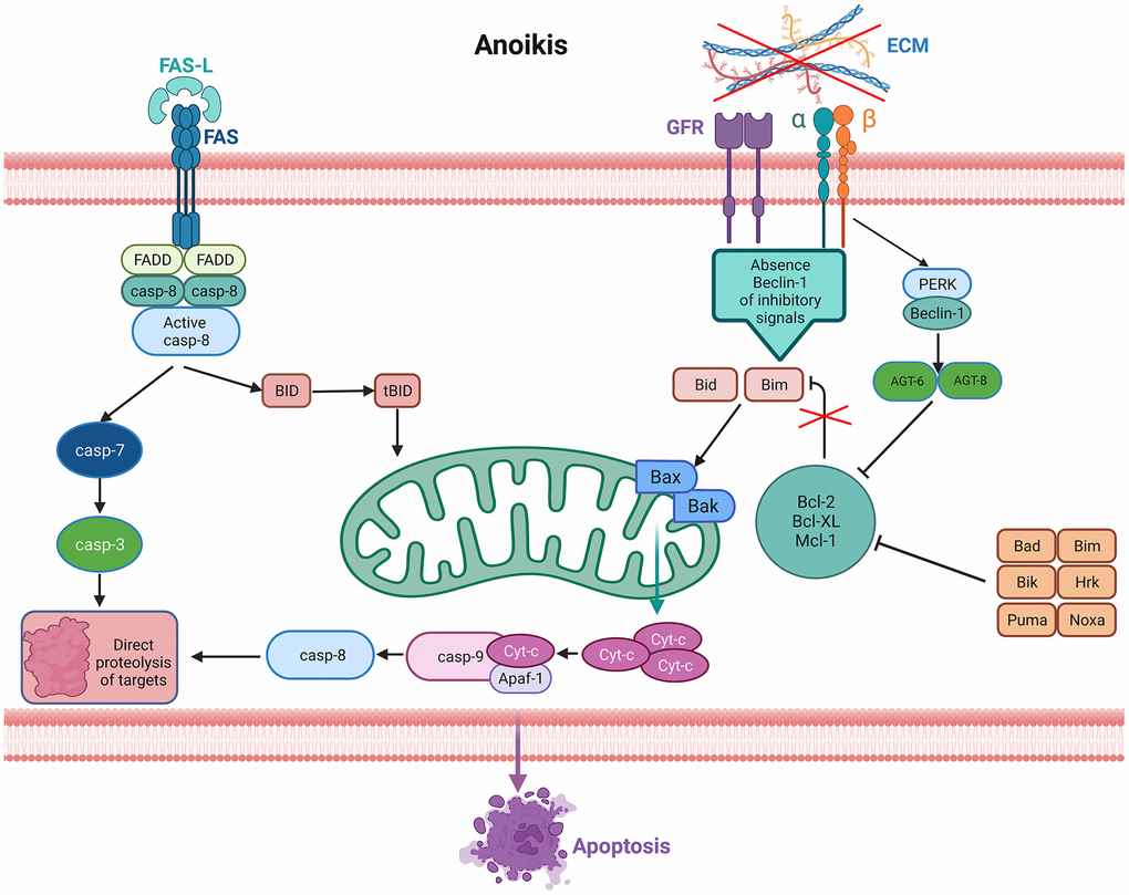 - 6. Raeisi M, Zehtabi M, Velaei K, Fayyazpour P, Aghaei N, Mehdizadeh A. Anoikis in cancer: The role of lipid signaling. Cell Biol Int. 2022; 46:1717–28. https://doi.org/10.1002/cbin.11896 [PubMed]